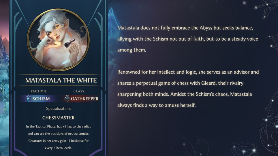 «Матастала не принимает Бездну полностью, но ищет равновесия, вступая в союз с расколом не из веры, а чтобы быть твердым голосом среди них.