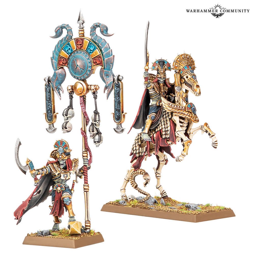 Разрешат приобрести набор с миниатюрами Королевских Вестников – Боевым знаменосцем и Принцем Гробниц. Оба бойца получили несколько вариантов рук, нагрудные украшения, плащи и два варианта головы.