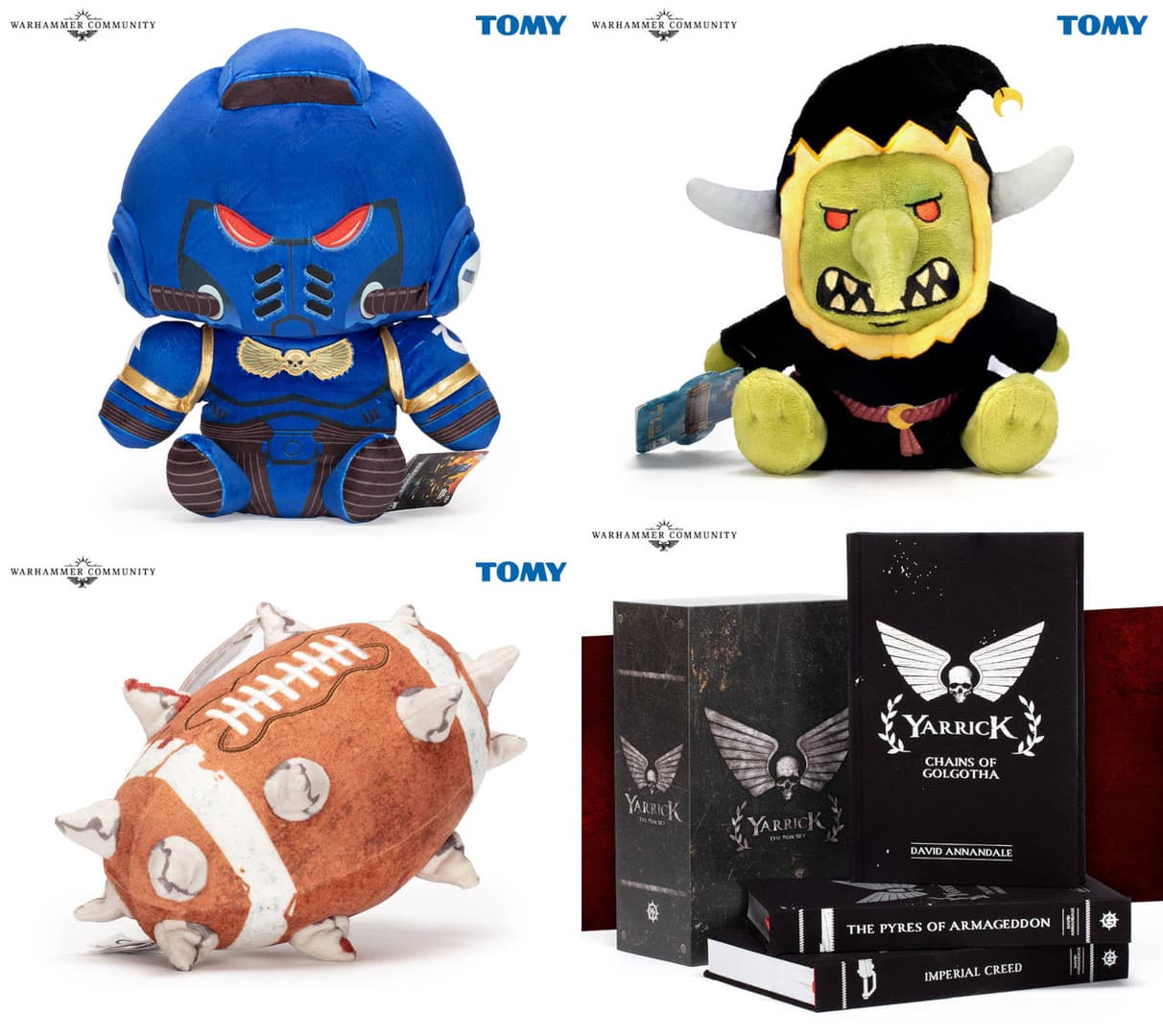 Помимо прочего, людям позволят купить 517 выпуск журнала White Dwarf, плюшевые игрушки от компании Tomy – Космический Десантник, мяч из Blood Bowl, Глумспайт Гит, и набор с романами от Дэвида Аннандейла, посвященными комиссару Себастьяну Яррику («Имперское кредо», «Костры Армагеддона» и «Цепи Голгофы»).