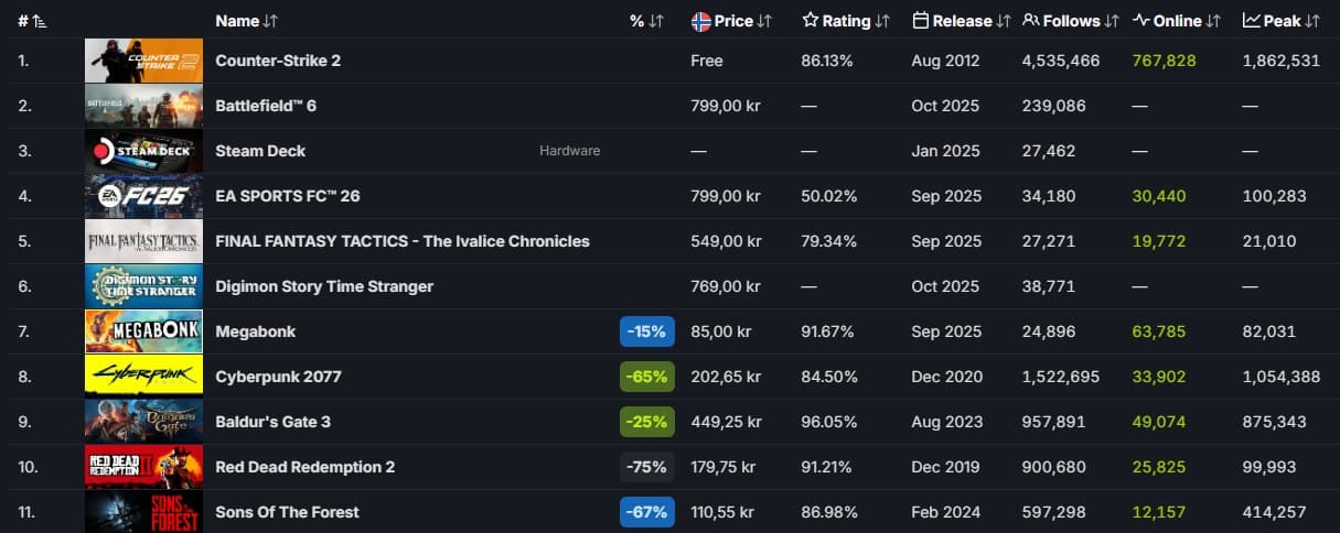 В Steam игра заняла четвёртое место в списке проектов с самыми высокими доходами (без учёта Steam Deck).