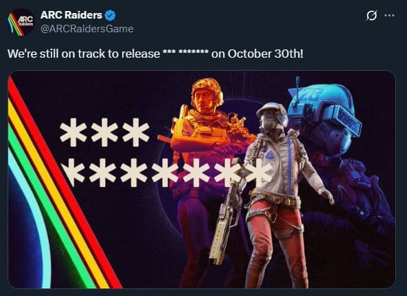 Студия Embark решила пошутить по поводу странной цензуры словосочетания «Arc Raiders» в бете Black Ops 7, напомнив на странице игры в социальной сети X, что релиз ее экстрашкен-шутера «все еще запланирован на 30 октября».