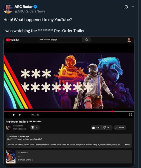 Шутку также подхватили фанаты ARC Raiders, в числе которых ARC Radar, решивший развить ее до поддельной страницы с трейлером на YouTube.