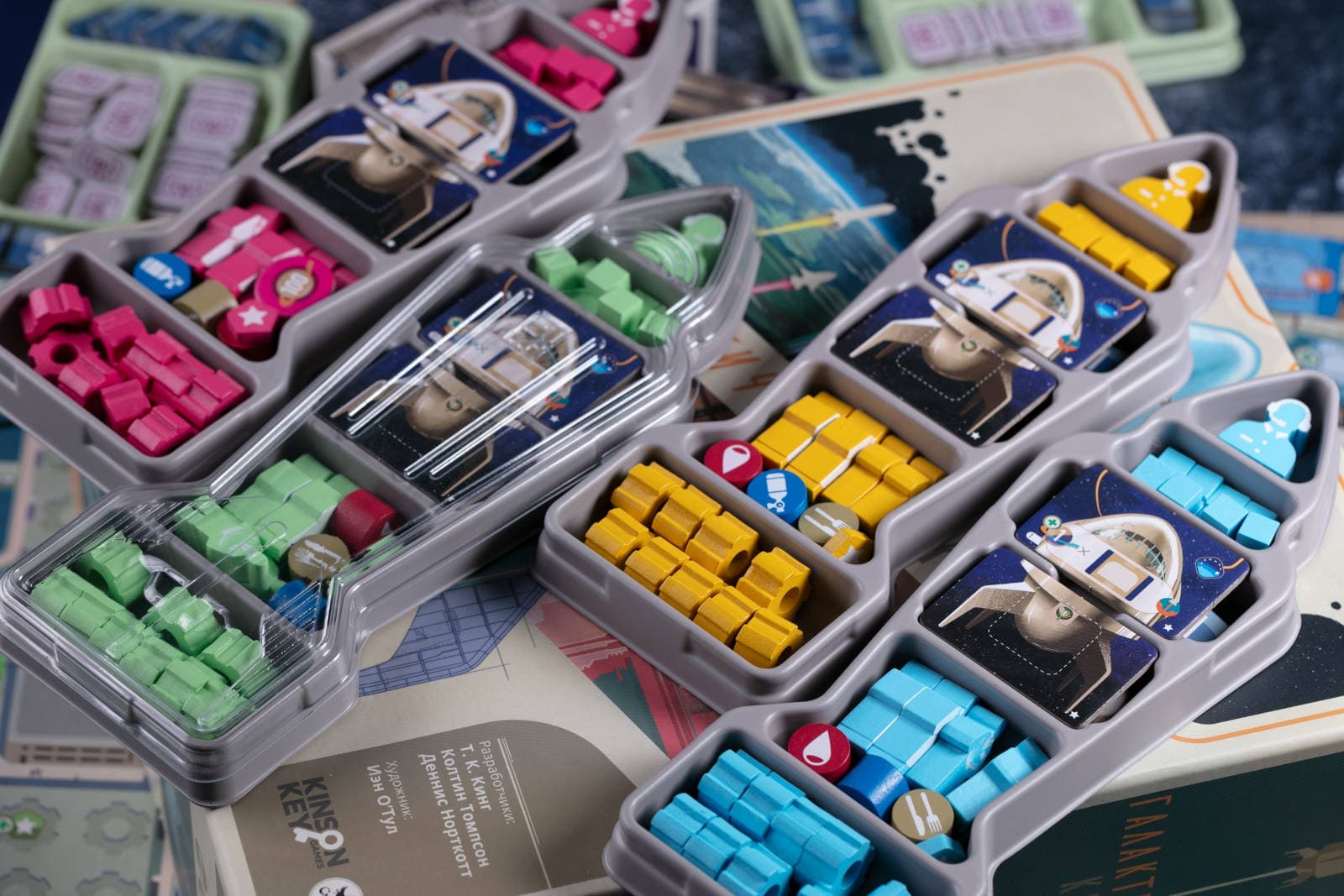 Благодаря дополнениям «Прогресс» и «Комфорт» игроки смогут оценить новые чертежи, карты улучшений, карты планов, жетоны специалистов, технологий, рубки, двигателя и улучшений, а также новые варианты игры.