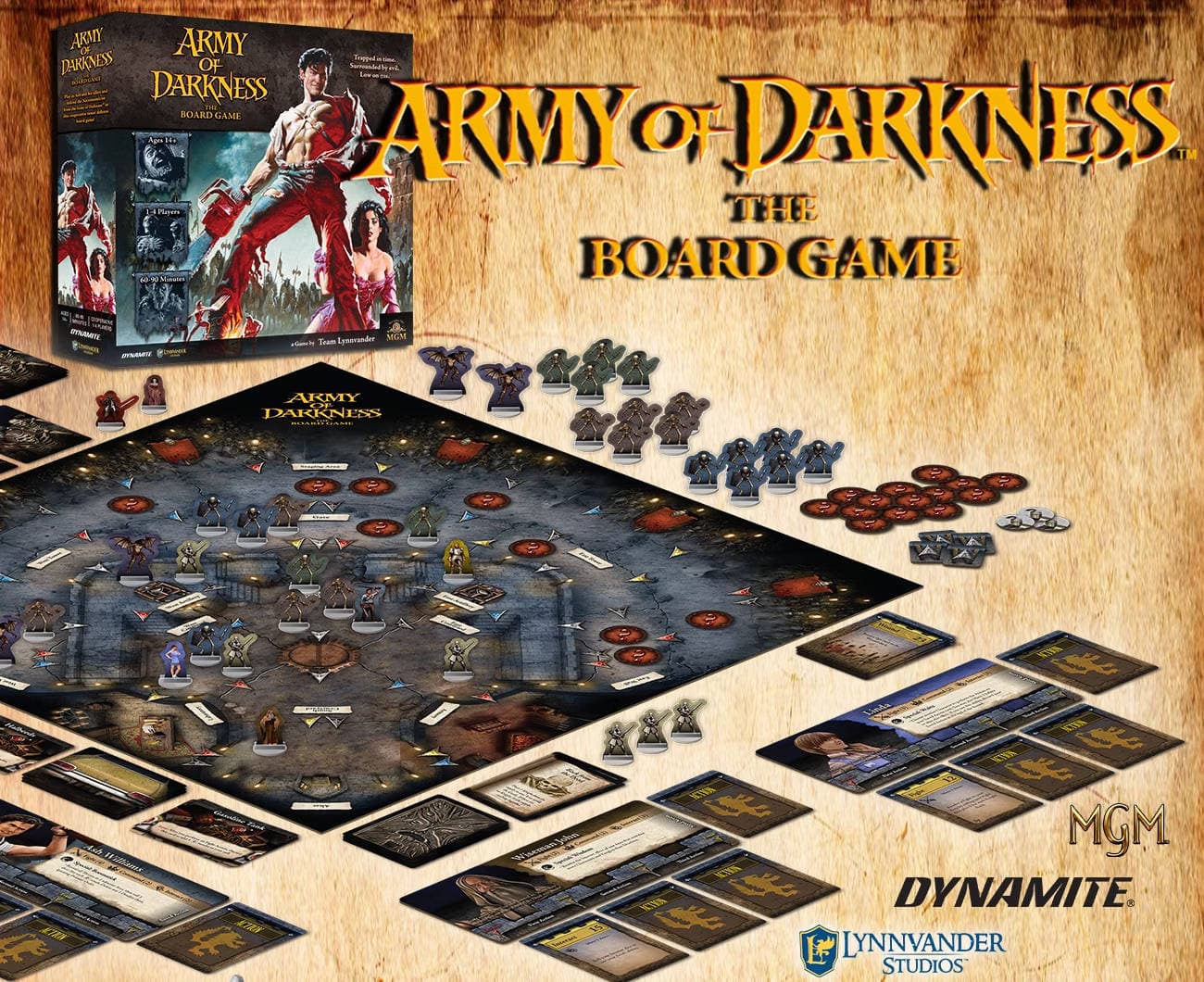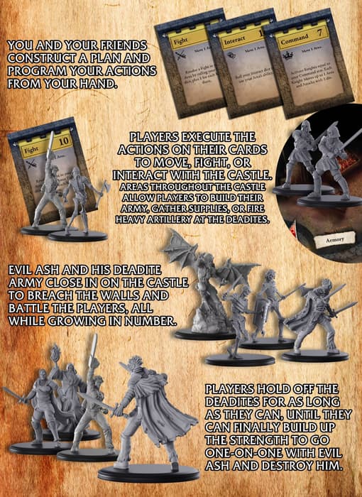 В Army Of Darkness Board Game, предназначенной для 1-4 человек, участникам вместе с Эшем Уильямсом предстоит защищает замок лорда Артура от нежити, пытающейся украсть Некрономикон, использовать различные карточки и улучшать оборону.