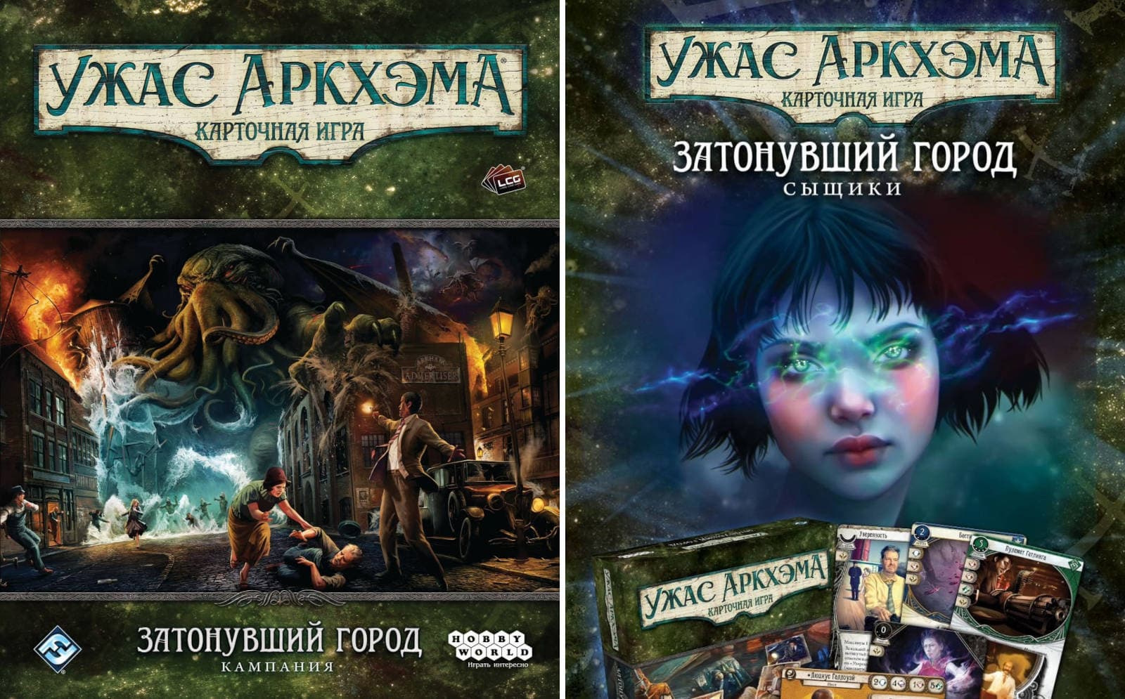 Сотрудники издательства Hobby World сообщили, что открылся предзаказ на кампанию «Затонувший город» и коробку с новыми сыщиками для кооперативной настолки «Ужас Аркхэма. Карточная игра», посвященной вселенной мифов Лавкрафта.