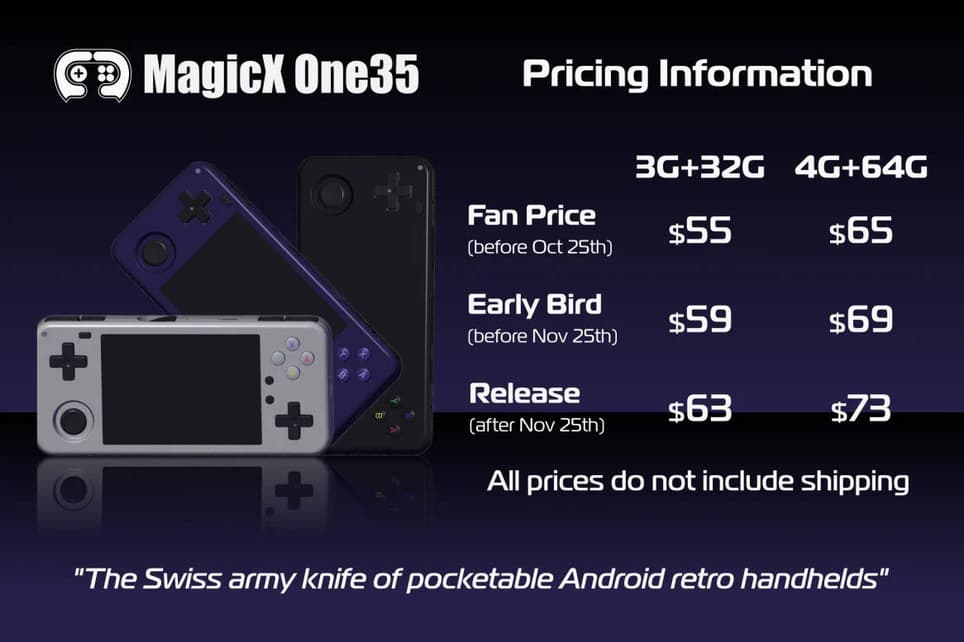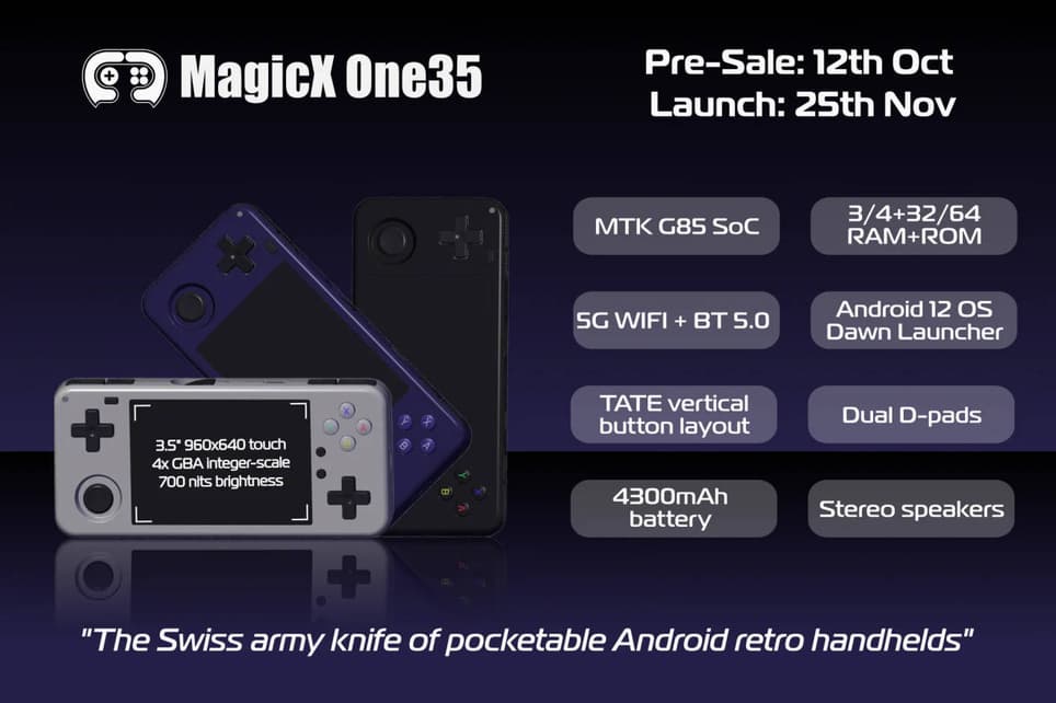 В конце ноября должен состояться релиз портативной и бюджетной ретро-консоли MagicX One 35, которую можно использовать в горизонтальном и вертикальном режимах. Она получила 3,5-дюймовый IPS-экран, чип MediaTek Helio G85 и двойные крестовины.