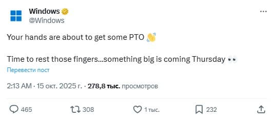 Microsoft анонсировал крупное событие, 16 октября 2025 года, компания представит «прорывную новинку» для Windows. Пользователи обсуждают загадочный тизер, опубликованный в официальном аккаунте корпорации, который мгновенно вызвал бурю комментариев.