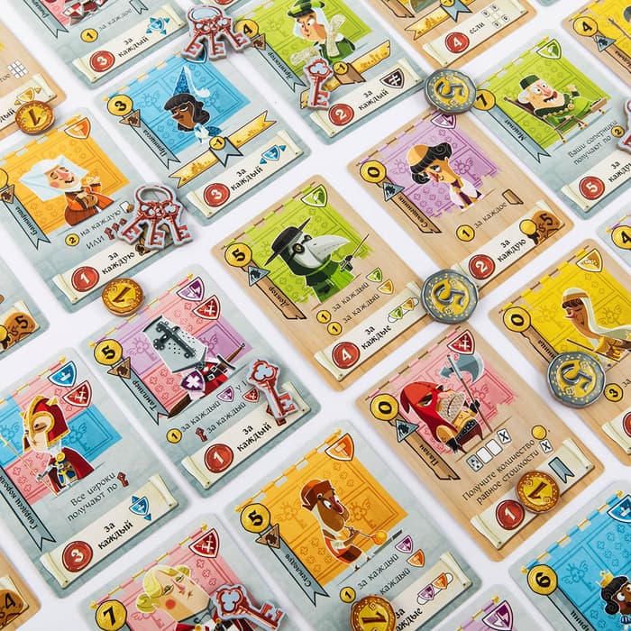 Персонажи обладают уникальными свойствами и могут принести участникам полезные ключи, монеты или победные очки. Плюс некоторые жители зависят друг от друга и работают только в определённой комбинации.