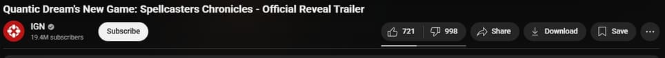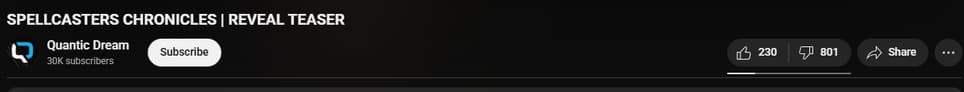 У дебютного трейлера Spellcasters Chronicles на официальном канале Quantic Dream чуть больше 14 тысяч просмотров, на которые пришлось более 800 пальцев вниз и 230 пальцев вверх (на момент написания этих строчек).