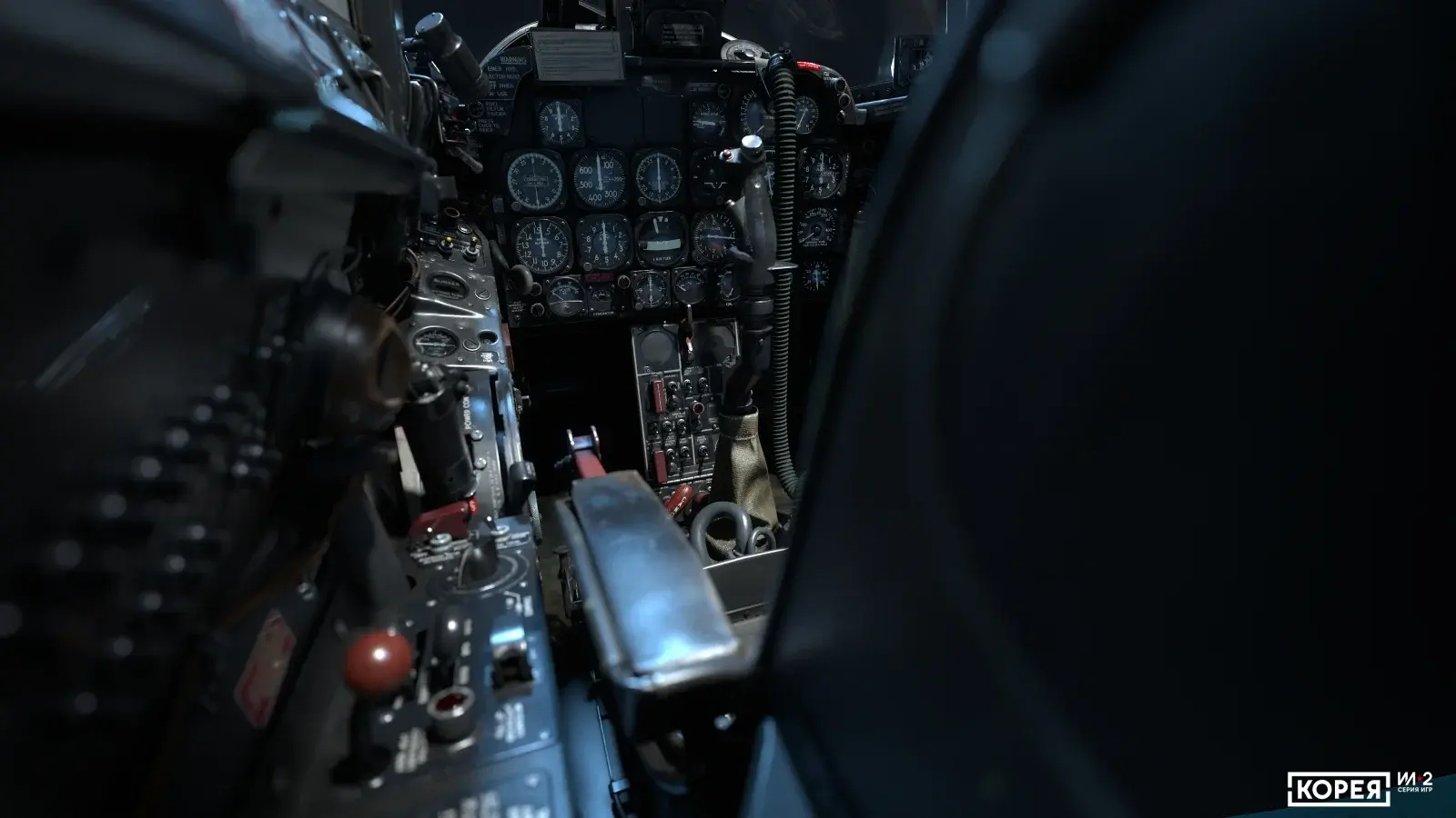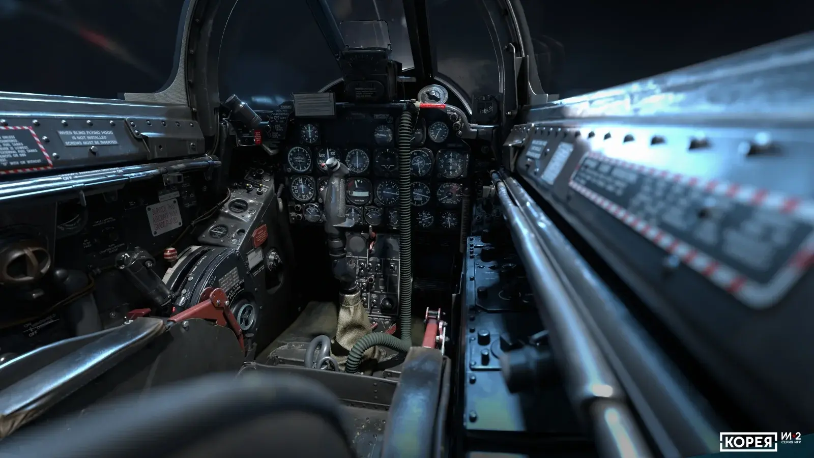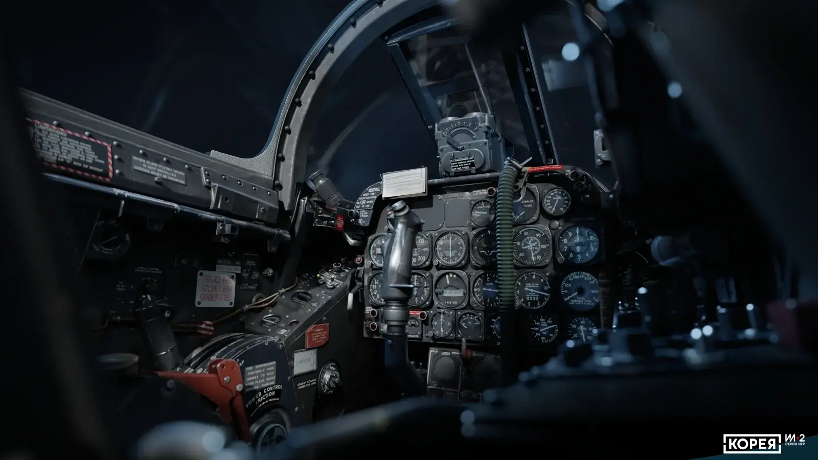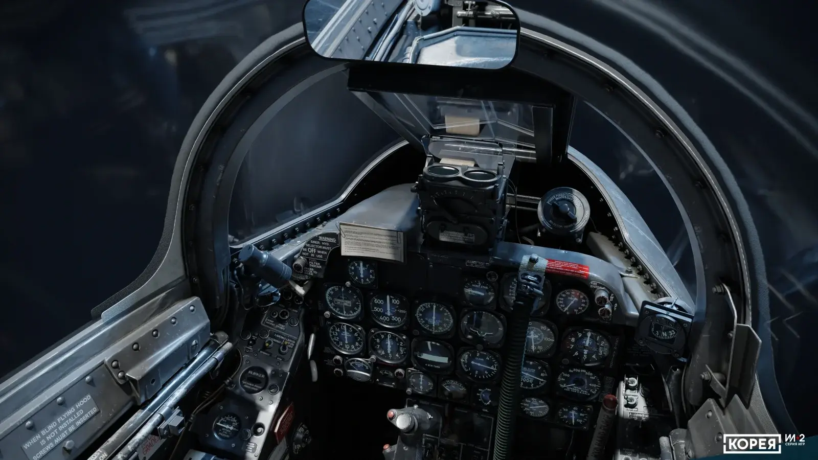 Для симулятора «Корея. Серия Ил2» мы выбрали поздний вариант кабины, в которой, тем не менее, установлен ранний, проверенный в боях Второй Мировой, гироскопический прицел Mark 18. Такая комбинация действительно применялась в Корейской войне потому, что серийный прицел A-1 в боевых условиях показал крайне низкую надёжность. Тем не менее, в качестве модификации мы планируем добавить возможность установки его доработанного варианта A-1CM в связке с радиолокационным дальномером AN/APG-30