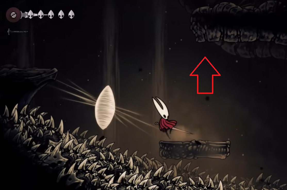 Вскоре появляется секция, где, как может показаться обычному игроку, нельзя пройти без рывка (дэша), однако выход есть — необходимо убить Хорнет. После воскрешения спавнится кокон, его можно использовать для того, чтобы добраться до нужной платформы.
