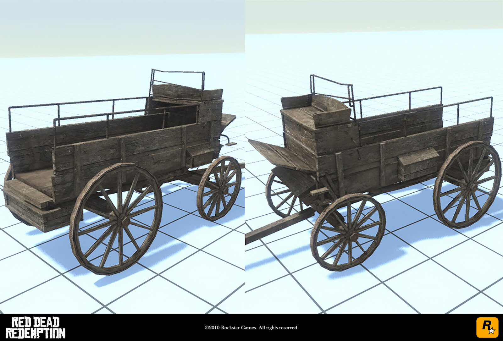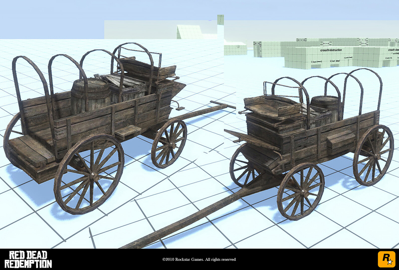 Также художник показал тестовый уровень с базовыми объектами и разнообразные игровые модели Red Dead Redemption: