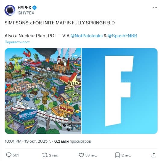 Информатор HUPEX сообщил в сети X, что в ноябре Fortnite получит специальный сезон, посвящённый «Симпсонам». Всю карту игры переделают под Спрингфилд — город, где живёт знаменитая семья.