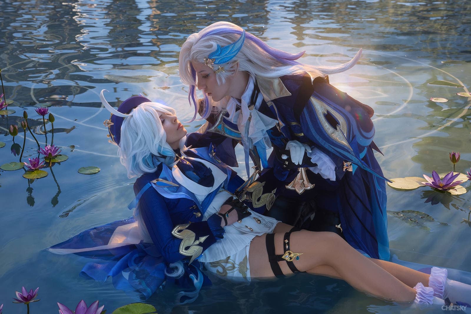 Александра «Yuna Lex» Лексина и Татьяна «Сонри» Базарова превратились в Фурину и Нёвиллета из игры Genshin Impact, чтобы защитить жителей Фонтейна от всевозможных опасностей.