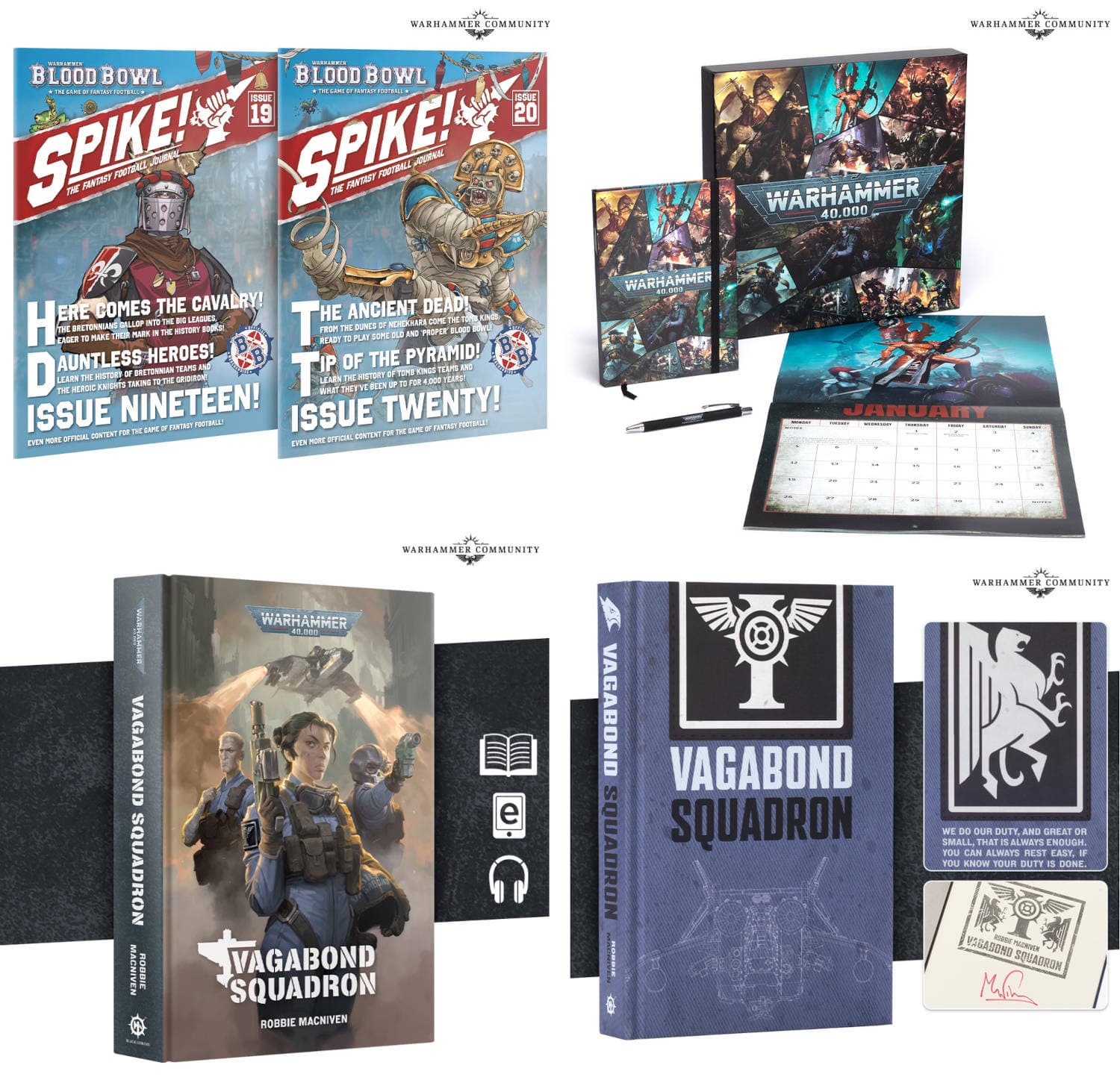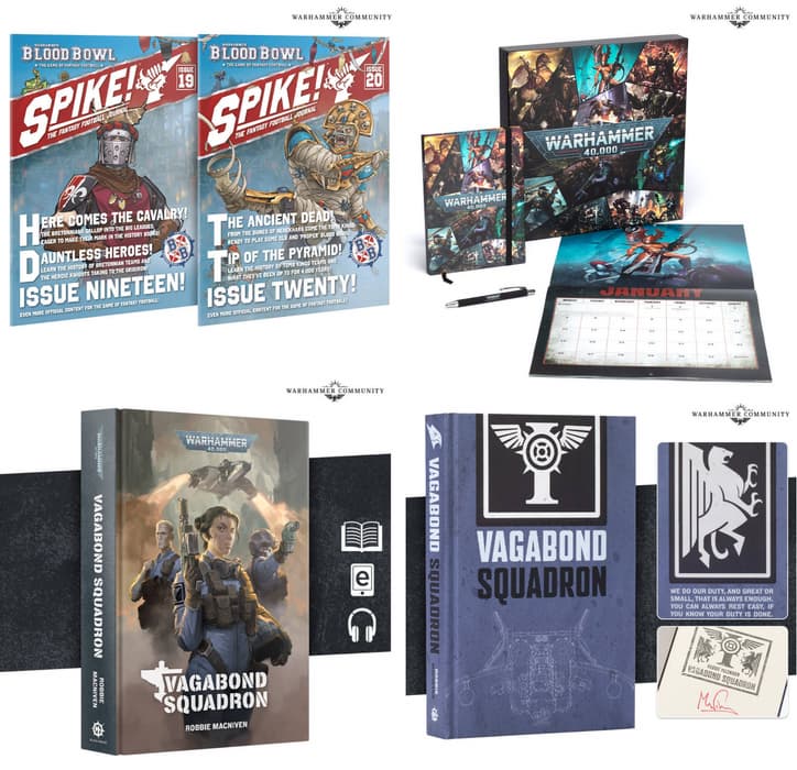 Разрешат купить набор справочных карт для вышеуказанных команд, наборы с тематическими кубиками, журналы «Spike!» (выпуски 19 и 20). Помимо прочего, удастся предзаказать коллекционный подарочный набор Warhammer 40,000, содержащий памятную коробку, календарь на 12 месяцев 2026 года, блокнот в линейку формата A5 и ручку.