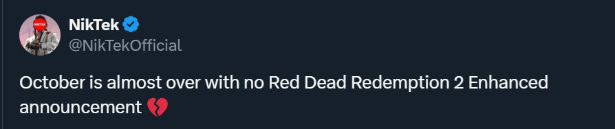 Октябрь подходит к концу, а анонса Red Dead Redemption 2 Enhanced так и не было