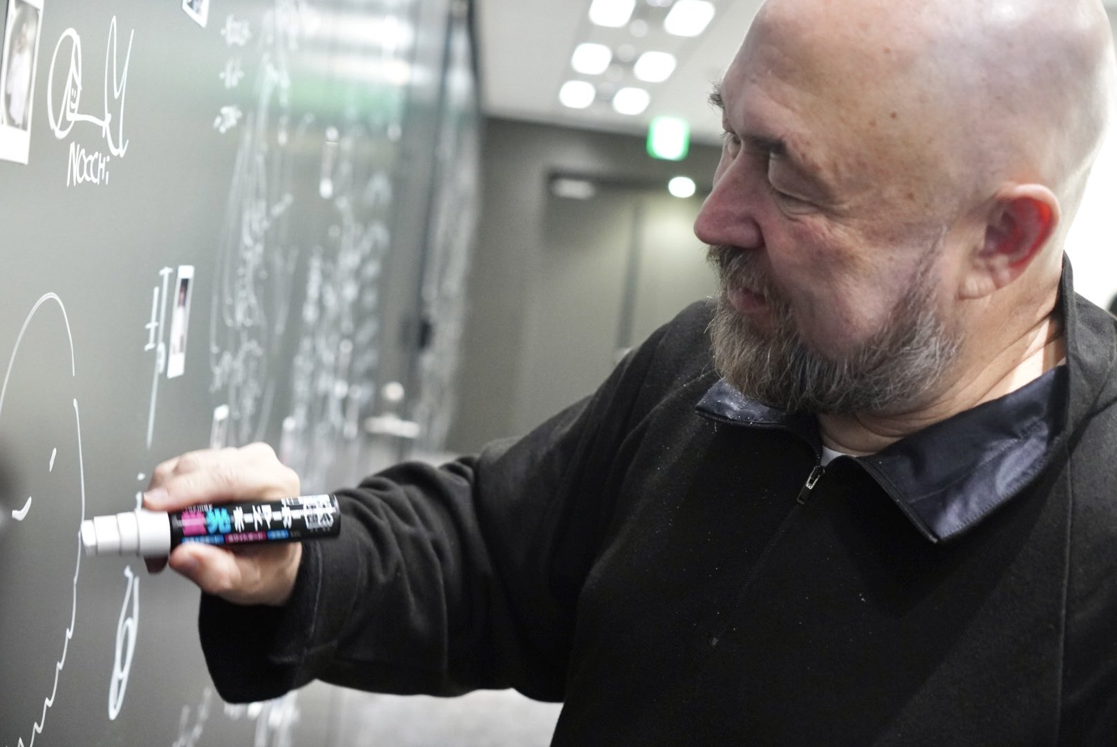 Разработчик опубликовал подборку кадров: гость традиционно сделал совместное фото с Кодзимой, а также оставил свой след на памятной доске.
