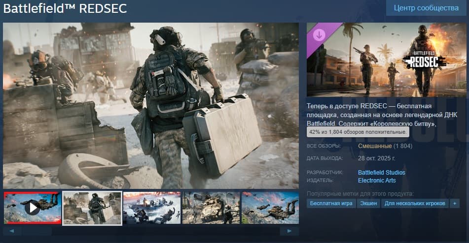 Вчера состоялся релиз Battlefield Redsec — бесплатного режима королевской битвы от студии DICE. Разработчики хотели открыть новый этап в мире Battlefield и привлечь игроков, ищущих динамичные баталии в стиле Warzone. Но старт оказался неудачным: сообщество встретило игру холодно.