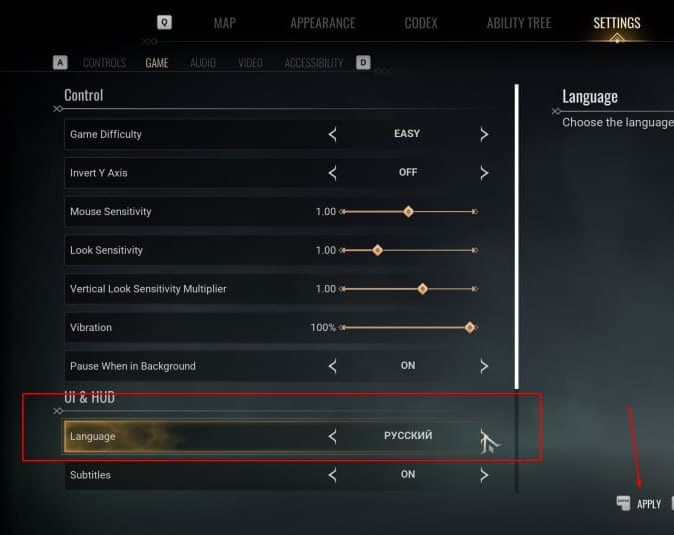 ▫️Снова выбрать язык «Русский» и нажать «Apply»;
