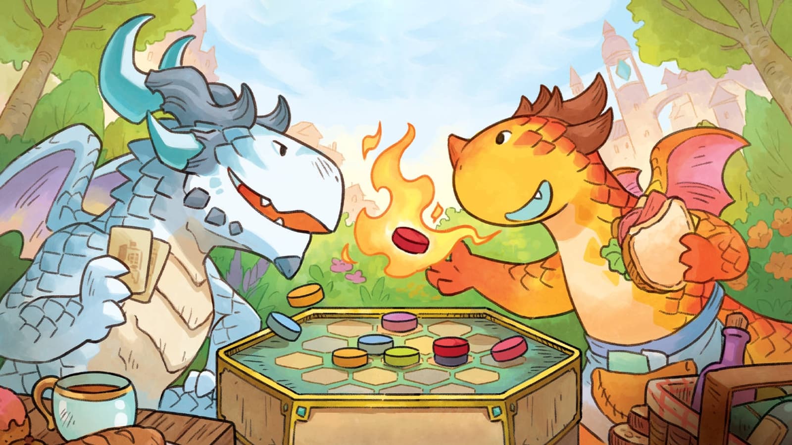 В этой дуэльной стратегии на составление узоров участникам предстоит наблюдать за похождениями драконов, вытягивать жетоны и размещать их на общем поле, активировать различные способности и выполнять цели.
