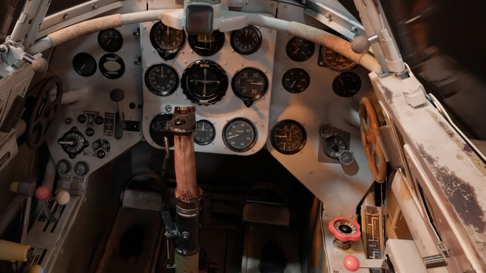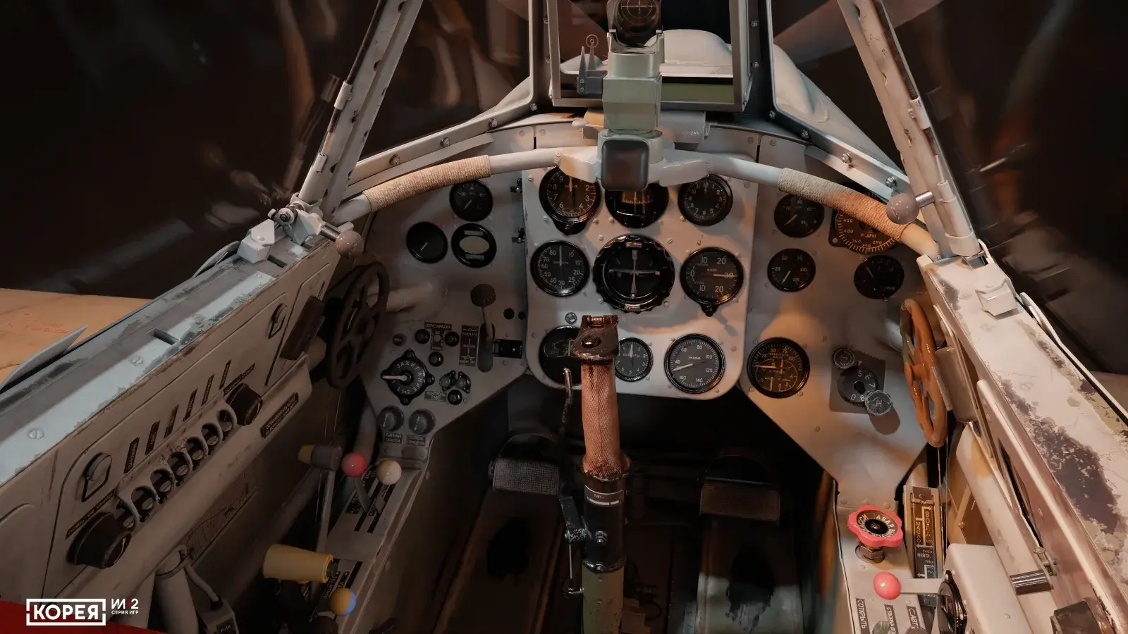 Можно наглядно сравнить, насколько отличается визуализация кабин в рамках предыдущего поколения технологий и в новом поколении, ведь в "Великих сражениях" есть схожий по компоновке кабины Як-9 1-й серии. Новый уровень графики кабины это ещё не всё: следует немного рассказать об оборудовании самолёта. Последнее поколение поршневых истребителей Яковлева было рассчитано на более массовое производство, чем истребители Лавочкина, недаром Як-9 — это самый массовый советский истребитель периода Великой Отечественной войны.