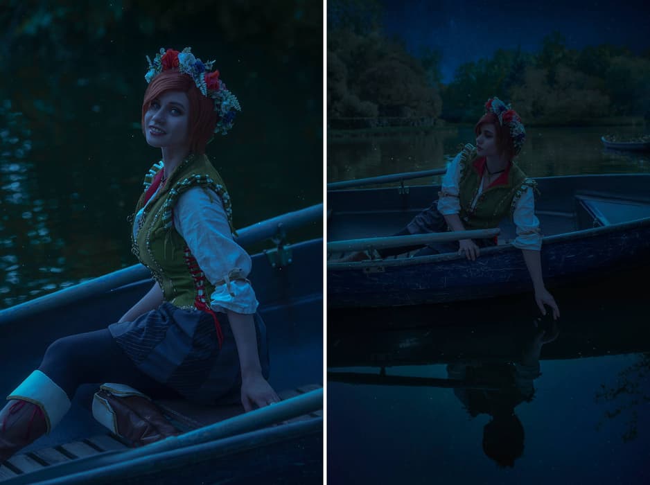 Скорее всего, команда постаралась воссоздать определенные сцены из второстепенного квеста «Ясная полночь». Именно во время данной миссии Шани и Геральт могут сесть в лодку и отправиться к центру озера (там либо состоится романтическая сцена, либо девушке станет плохо).