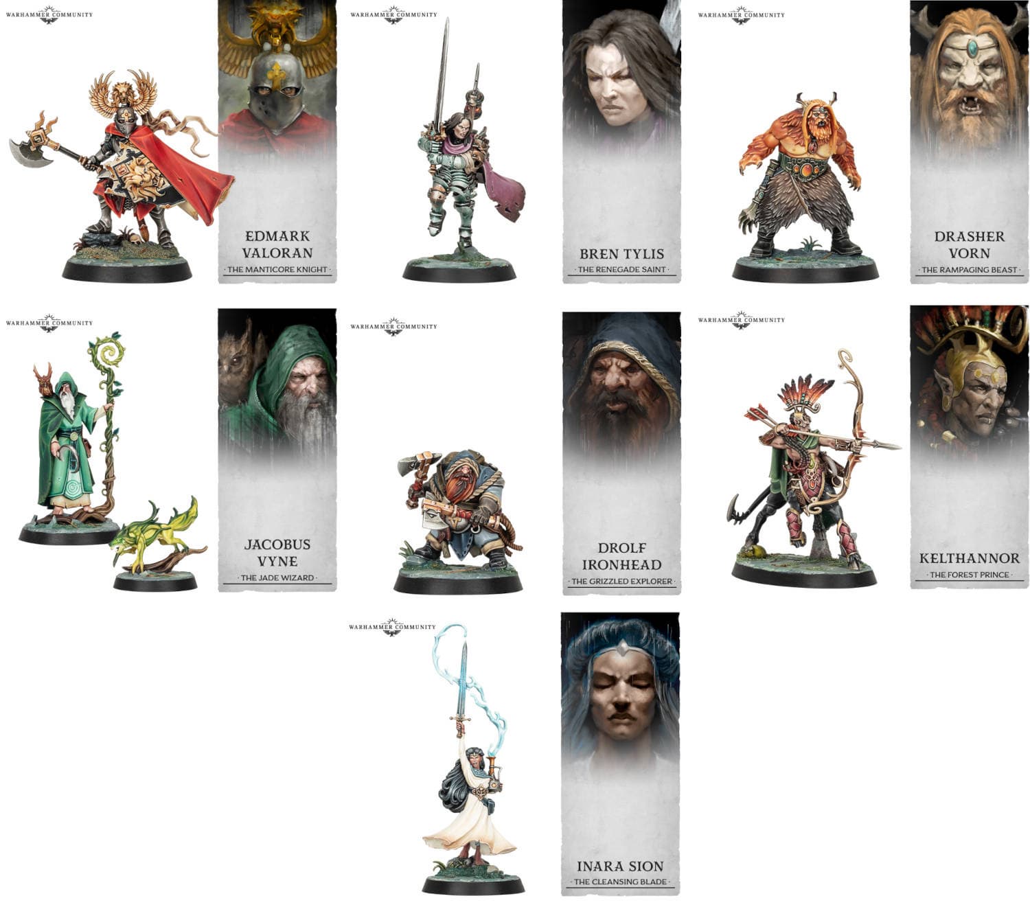 Коробка содержит 49 пластиковых миниатюр. Из героев будут доступны Дролф Железноголовый, Эдмарк Валоран, Брен Тайлис, Инара Сион, Келтаннор, поклоняющийся богу-охотнику Курноту, Драшер Ворн – вождь племени оборотней из Гура, поклоняющихся аспекту Вечной Королевы, Якобус Вайн – нефритовый маг, путешествующий с озлобленной совой и лесным духом‑лисицей по имени Виспер.