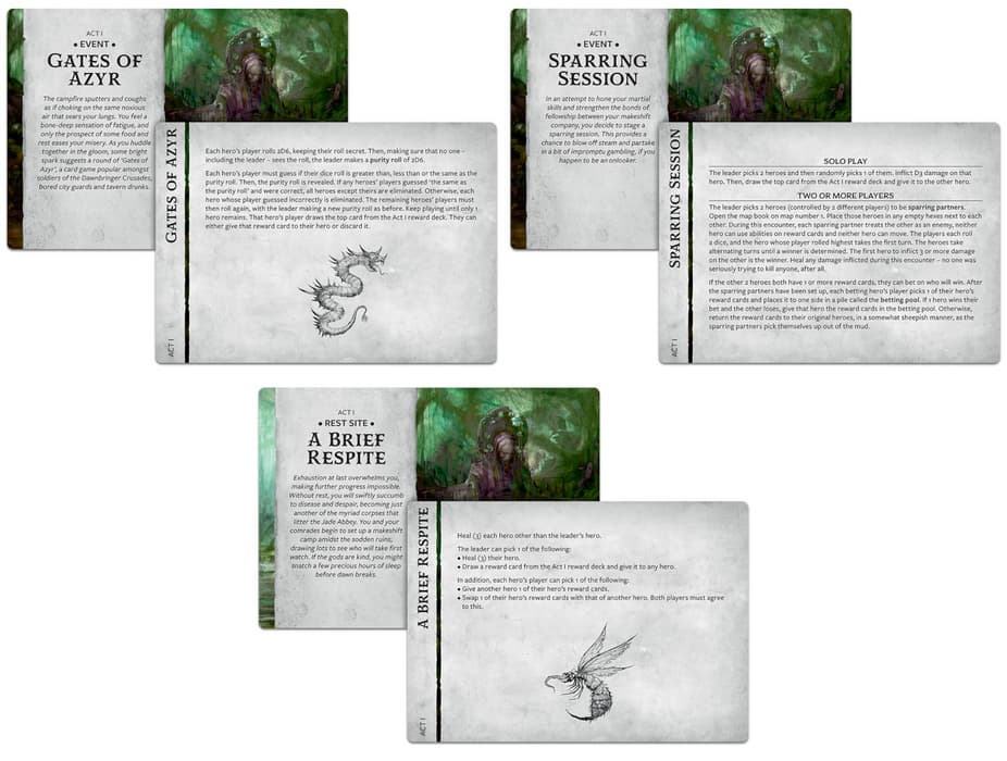 Кроме того, в коробке есть 14 кубиков Warhammer Quest, 36‑страничное руководство по правилам, краткое руководство для начинающих, 61 картонный жетон, 341 карта и 12 коробочек для карт, чтобы сохранять прогресс между сеансами.