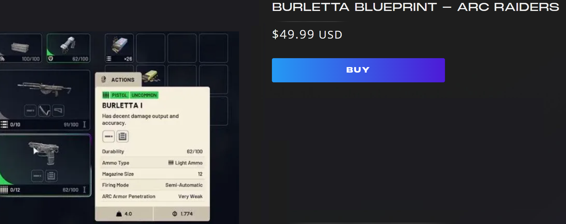 В сети уже начали появляться объявления о продаже виртуальных товаров, порой цены могут превзойти стоимость самой игры. Например, чертёж Burletta в сети продают за 50 долларов, в то время как цена ARC Raiders составляет $40.