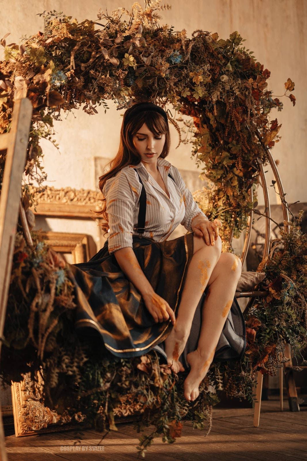 Также Svizee похвасталась своей юбкой с золотыми узорами, в которой она пару раз выходила просто погулять, и сообщила о том, что в будущем, возможно, порадует фанатов косплея кадрами с беловолосой Клеа.