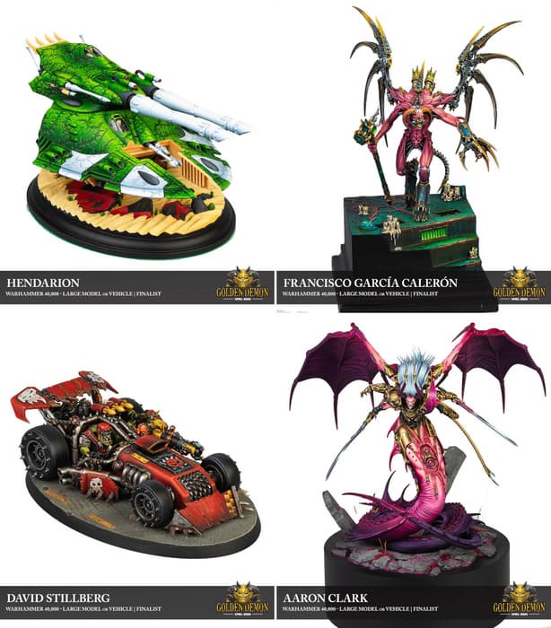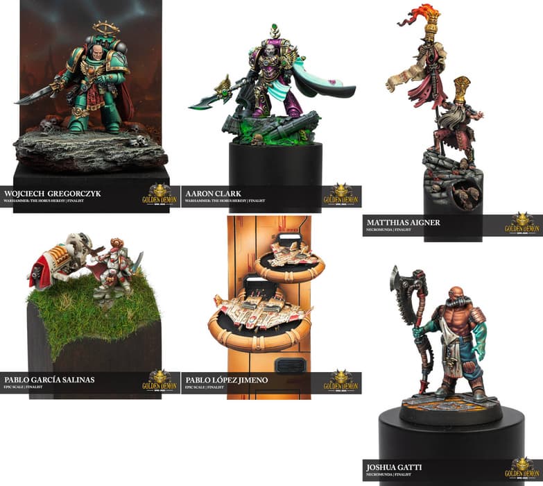 Несколько категорий: Warhammer: The Horus Heresy – Wojciech Gregorczyk, Aaron Clark, Necromunda – Matthias Aigner, Joshua Gatti, эпический масштаб – Pablo Garcia Salinas, Pablo Lopez Jimeno.