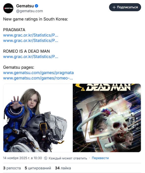 Pragmata и Romeo is a Dead Man остаются интригующими проектами следующего года, и рейтинги в Корее подтверждают, что релиз близится к финальной стадии.