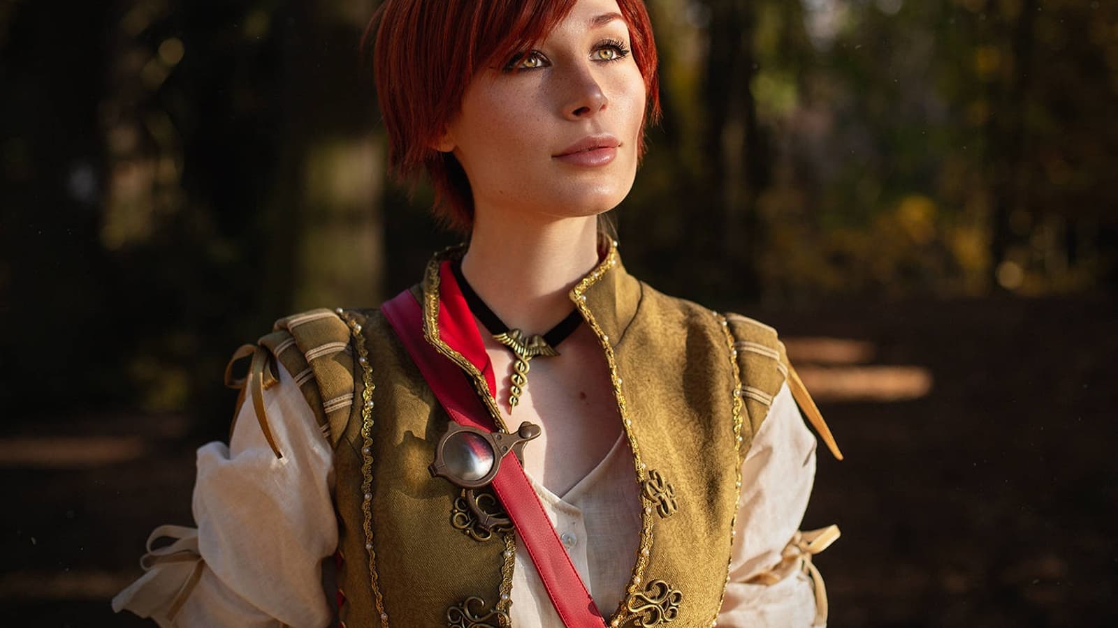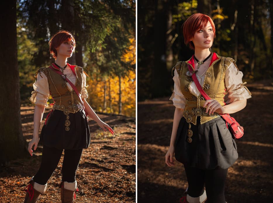 Она вновь предстала в образе Шани из дополнения «Каменные сердца» – талантливого медика, выпускницы и позже сотрудницы медицинского факультета Оксенфуртского университета. На этот раз модель провела фотосессию в осенней обстановке.