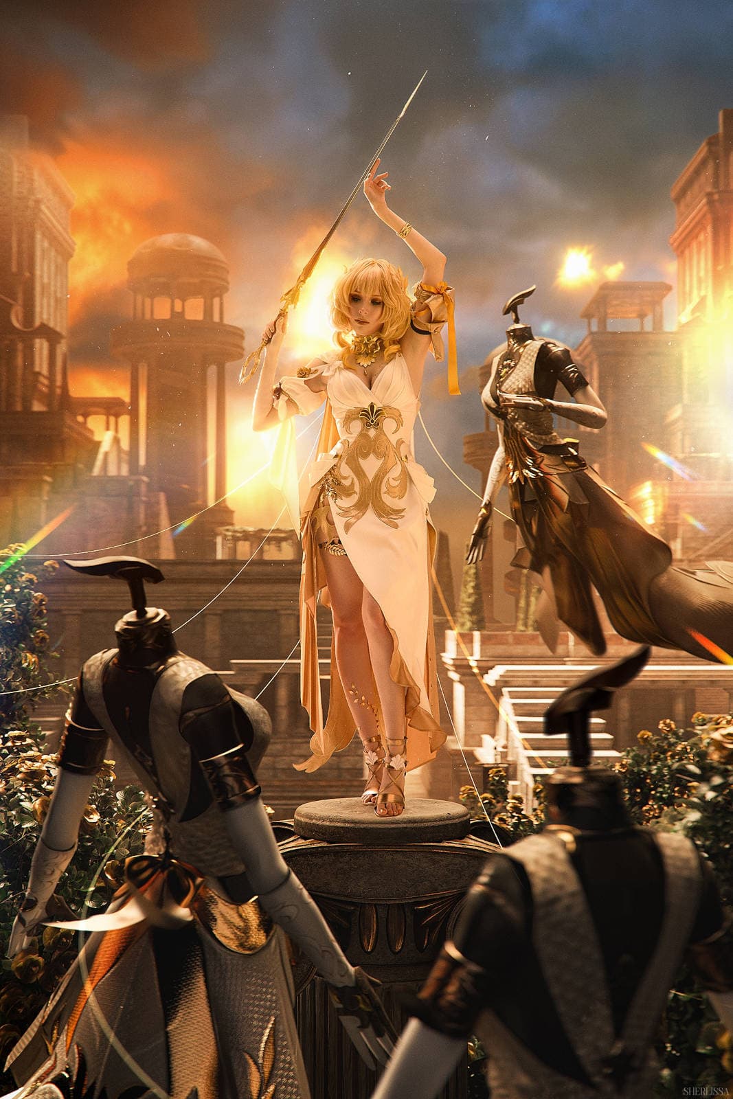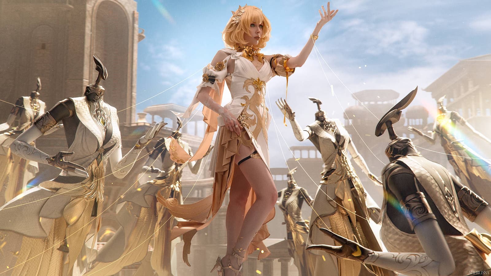 У модели Елизаветы «HolyLeza» Смекаловой получилось воплотить образ пятизвёздочной героини Аглаи из игры Honkai: Star Rail, которая является одним из Золотых потомков Амфореуса.