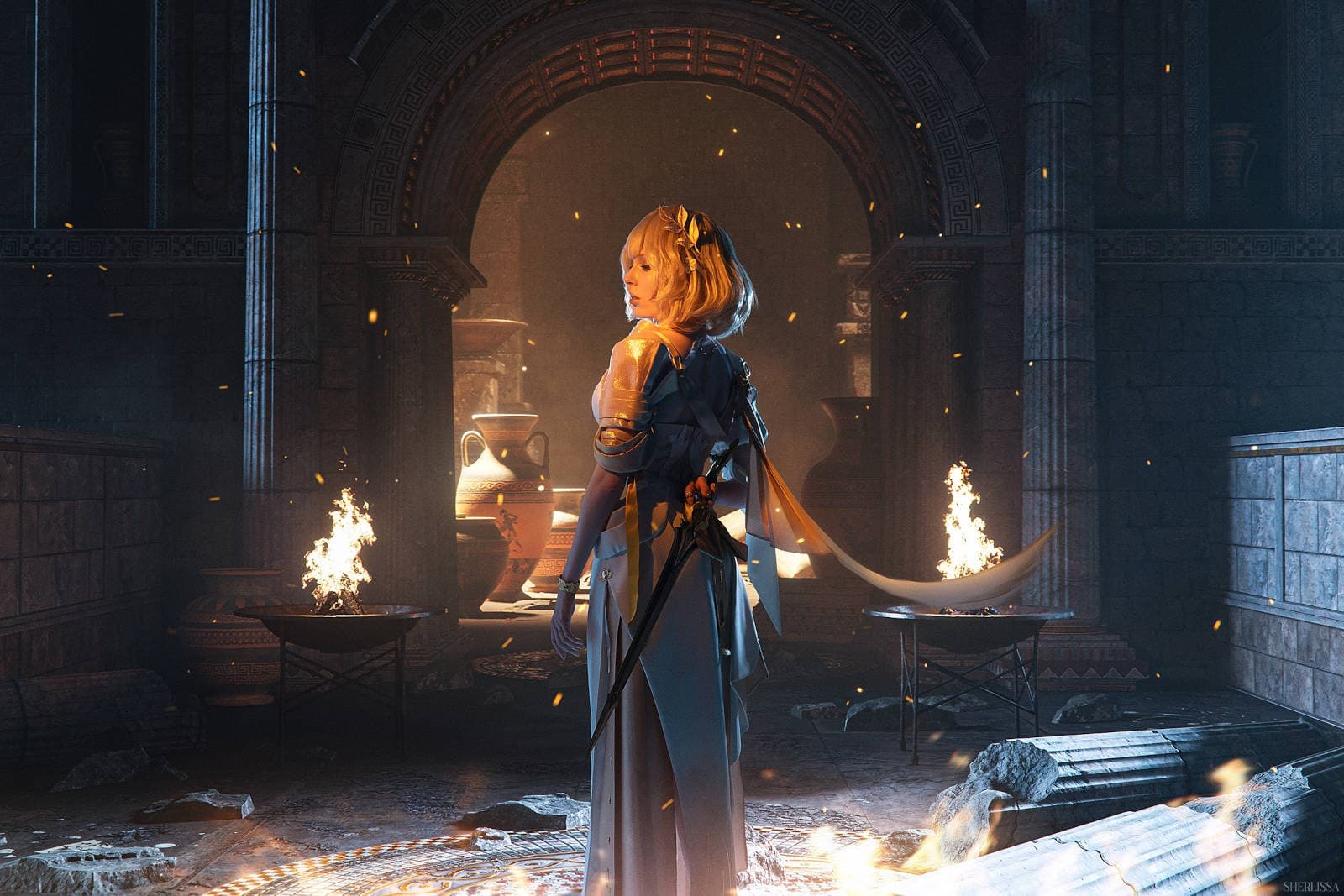 Она поделилась с фанатами косплея фотографиями, на которых модель Елизавета «HolyLeza» Смекалова предстала в образе Аглаи – пятизвёздочной героини, вставшей на путь Памяти.