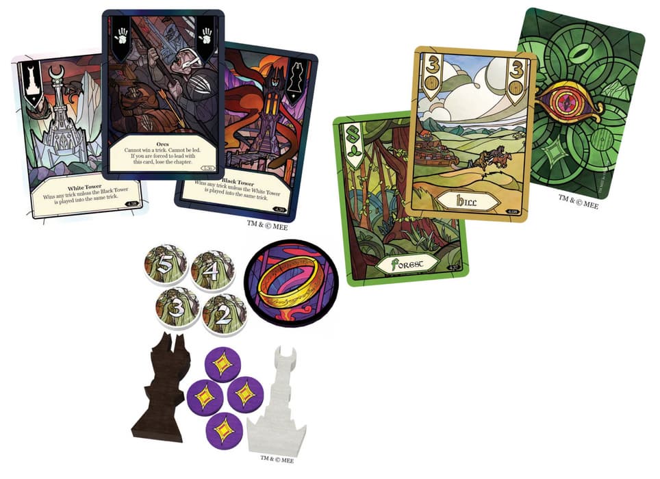 The Lord of the Rings: The Two Towers Trick-Taking Game является самостоятельным продолжением The Lord of the Rings: The Fellowship of the Ring – Trick-Taking Game с новыми механиками, персонажами и витражными иллюстрациями.