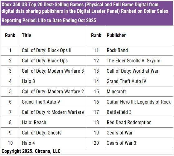 Аналитическая компания Circana (ранее NPD) представила список самых продаваемых игр Xbox 360 в США за всё время.