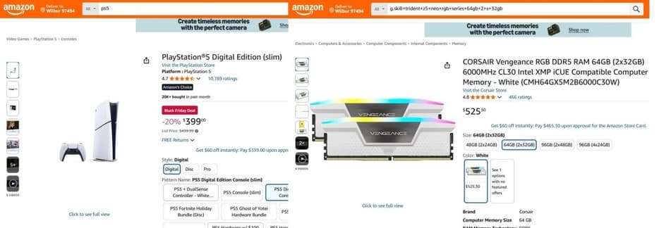 По данным Amazon, консоль Sony выглядит значительно выгоднее любого варианта DDR5. Аналогичная ситуация наблюдается и в сети Best Buy.