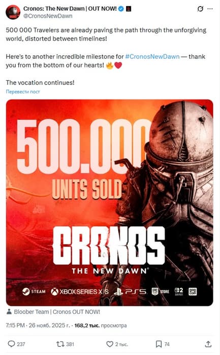 До 26 ноября продано более 500 000 копий на всех платформах, сообщила студия в сети X.