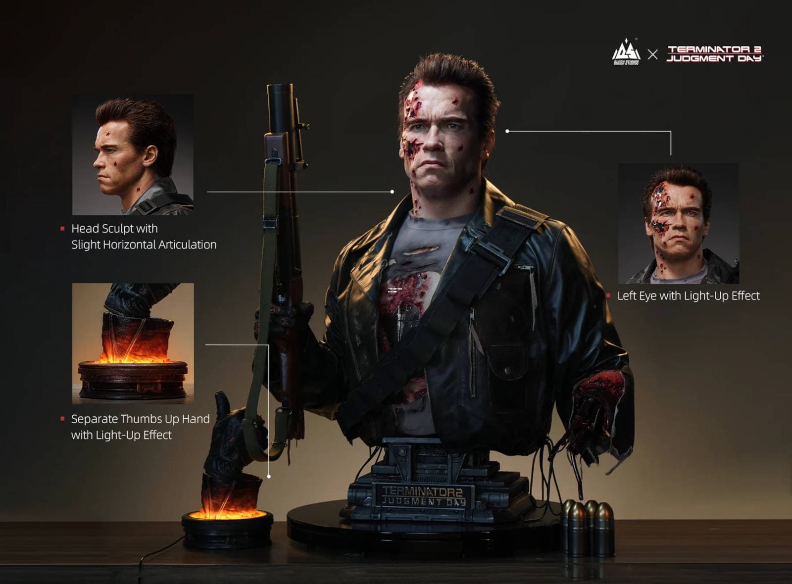 Бюст оснащён функцией лёгкого поворота головы влево-вправо, подсветкой в левом глазу и очками. Плюс в комплекте есть особая статуя с LED-подсветкой. Речь идет о руке терминатора, показывающей жест «большой палец вверх».