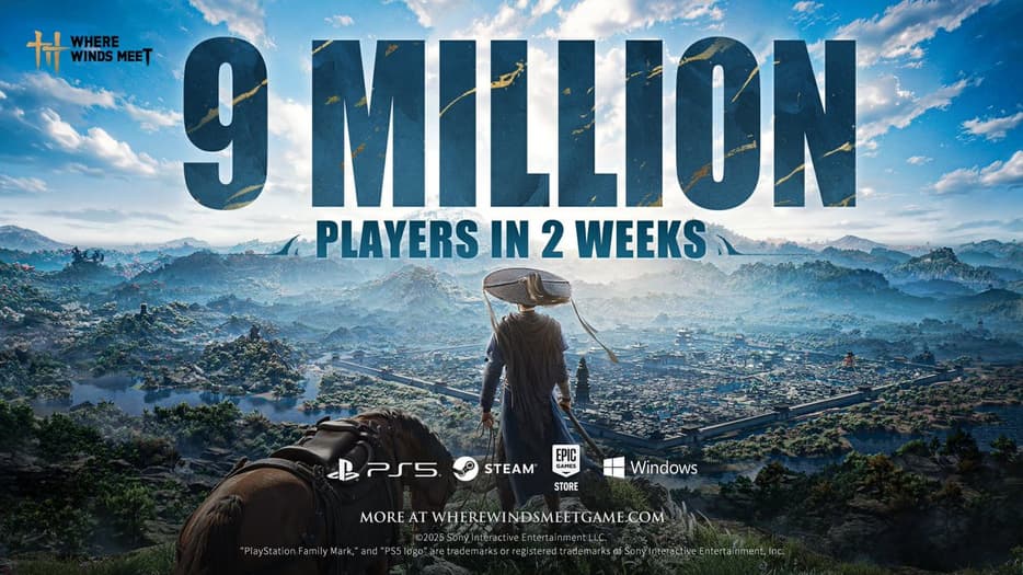 Where Winds Meet стала одним из самых заметных успехов конца 2025 года. За две недели после глобального релиза в игру сыграли более 9 миллионов человек — об этом сообщили разработчики из Everstone Studio в официальных социальных сетях.