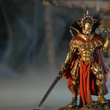 Его модельку можно собрать с нагрудной пластиной и маской или без них — чтобы продемонстрировать изуродованную истощённую плоть под бронёй. Плюс в комплект входит отдельная миниатюра его сервитора‑кариатида. Правила для Озостиума приведены в 128-страничной книге «Престолонаследие Арантиев: Шпиль Примуса» (The Aranthian Succession: Spire of Primus).