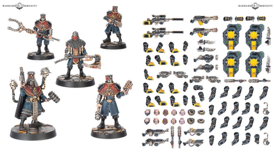 Разрешат купить набор с «Прихвостнями», содержащий пластиковые миниатюры Патронщика, Похлебочника, Бегущего по Куполу, Подпольного врача (с двумя вариантами головы и меди-черепом) и Смотрителя Улья.