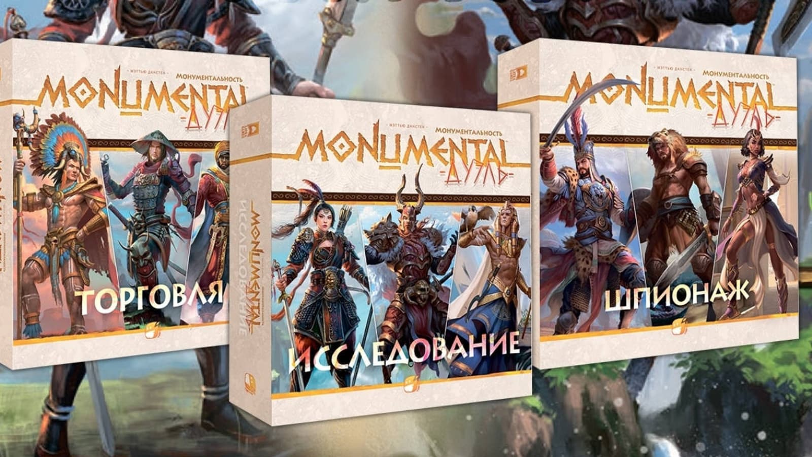 Издательство «Лавка Игр» (Lavka Games) объявило о поступлении в продажу «Монументальность. Дуэль» — серии дуэльных игр из трёх коробок с общей механикой.