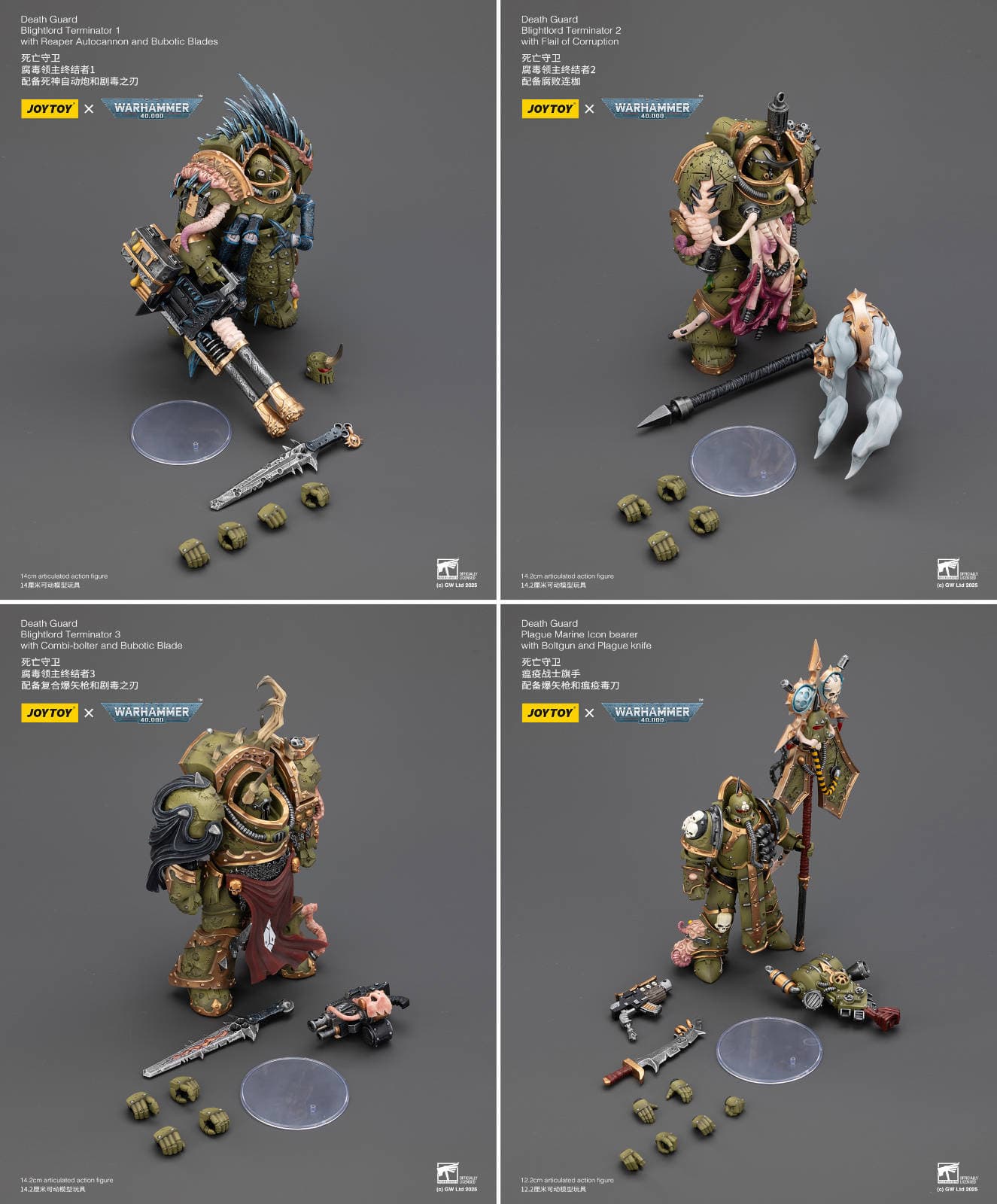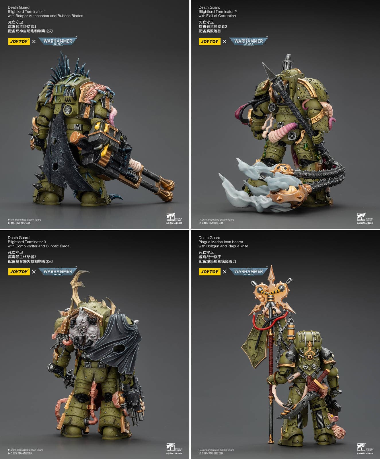 В январе 2026 года коллекционеры, обожающие Гвардию Смерти из вселенной Warhammer 40,000, смогут раздобыть новые вариации терминаторов и чумного космодесантника-знаменосца от компании JoyToy.