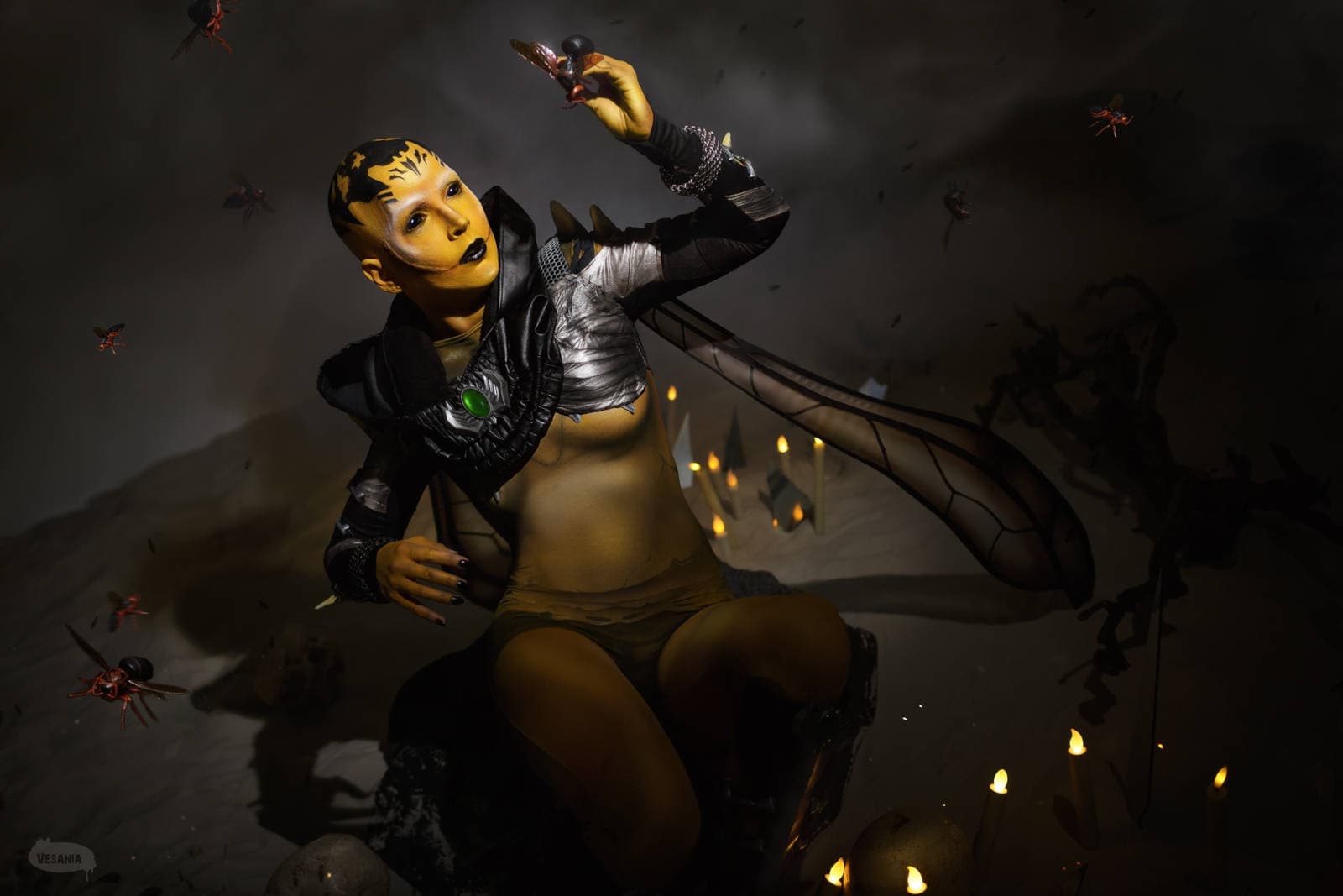 Косплеер Яна «Raccoon Jeffree» Февралева решила показать силу насекомых. Она предстала в образе грозной Ди'Воры из файтинга Mortal Kombat X, которая присягнула на верность Шао Кану и стала его советником.