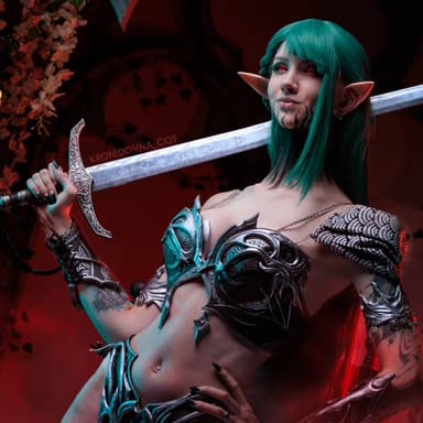 Модель KroniDovna тоже познакомилась с подобным редактором, но она пошла немного дальше и представила косплей кастомной героини, которая, скорее всего, является эльфийкой и Тёмным Соблазном.