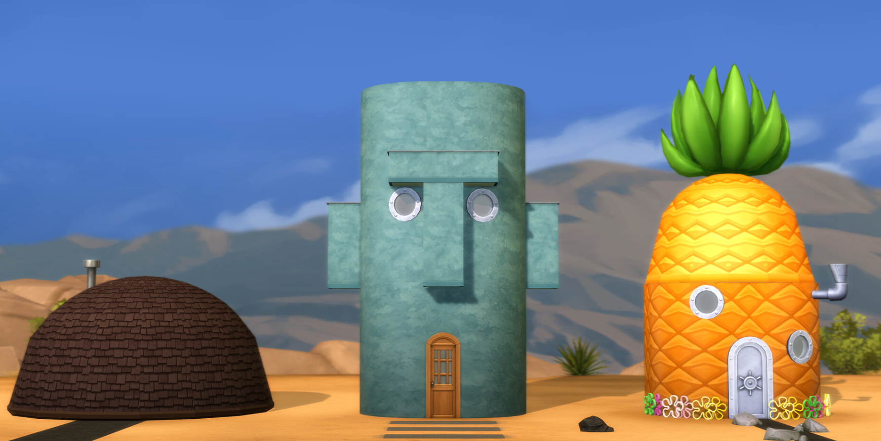 Есть пара премиальных DLC-комплектов «Детская в стиле Губки Боба» и «В гостях у Губки Боба» с мебелью и декором, которые помогут сделать дом в форме ананаса и украсить его предметами из Бикини Боттом.