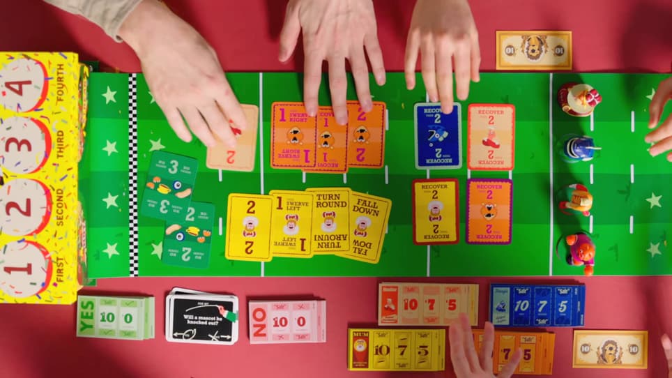 После подобных действий интрига нарастает, так как несколько карт взакрытую удаляются, и начинается гонка – игроки открывают карты одна за другой, приводя в движение неуклюжих маскотов. Они бегут, сталкиваются, вылетают с трассы, разворачиваются и бегут обратно.
