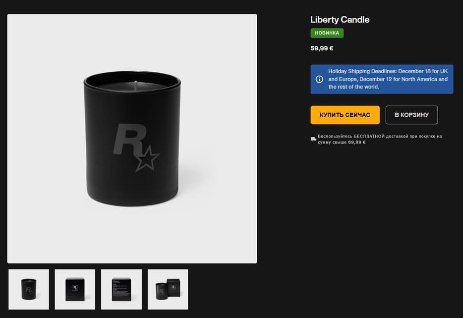Релиз GTA VI перенесли на 19 ноября 2026 года. При этом компания уже начала продавать официальный мерч. В начале декабря в магазине появился первый товар — «Vice Candle».